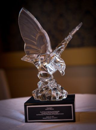 At the recent annual meeting of Owners’ Counsel of America, OCA presented Pacific Legal Foundation attorney Jim Burling with the Crystal Eagle Award, bestowed on “individuals who have made a substantial contribution toward protectingthe civil right of private property ownership.”