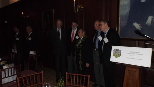 And the highlight of the Conference is the event at which the Prize is awarded, a candlelight dinner in the historic Wren Building, in the room in which John Marshall and Thomas Jefferson read law. Here’s Mike with the four past prizewinners in attendance at the dinner last night.