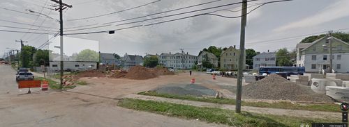 “Driving” to the intersection with Washington Street, however, the Street View changed to the after condition, the building disappeared, and the DOT’s construction is shown.