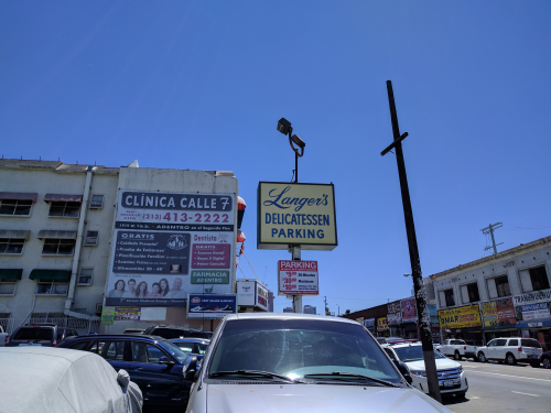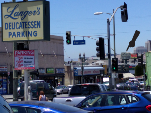 As we’re parking in Langer’s lot, located a block away from the restaurant (see first picture above, which shows the big arrow on Langer’s storefront pointing to “Parking 7th and Westlake”), our takings link occurs to us. As always, there is a takings link. (We have noted that we can find an eminent domain or property angle in nearly everything).
