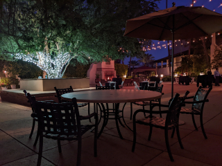 Outdoors at night – really nice under the lights by the fire, after a long day of CLE programming.