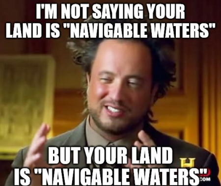And if the purpose of the statute controls over the actual text as some of the Justices seemed to be suggesting and the purpose is to ensure that waters are free of pollution, then isn’t literally everything covered? Are they arguing for some kind of conceivable basis test for WOTUS? Seems so. Is land a “water” in the same way that bees are fish in California?