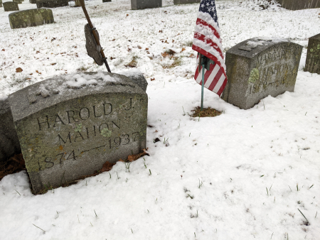 Here, at the Craig-Mahon family plot, he lies in repose with Mrs. Mahon.