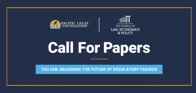 Have thoughts about where regulatory takings are (or should be) headed? Here’s your chance to get in on the conversation, and to shape the future of the law. Our outfit, the Pacific Legal Foundation, in cooperation with the Antonin Scalia Law School’s Journal of Law, Economics, and Policy, are calling for papers on “Imagining the Future of Regulatory Takings.” There will be an in-person discussion of these papers at the Law School in October 2024.